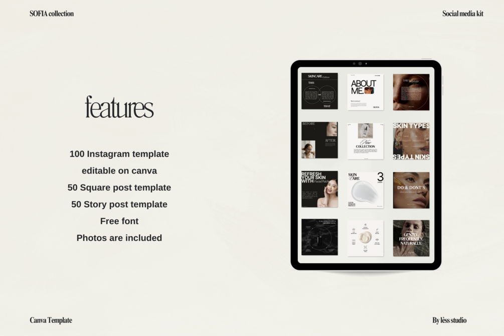 This template can be used for any skincare business such as Estheticians, Med spas, Beauty Branding, Injectors, Dermatology Clinics, Plastic surgeons Or any Luxury Beauty related service looking to elevate their social media presence.