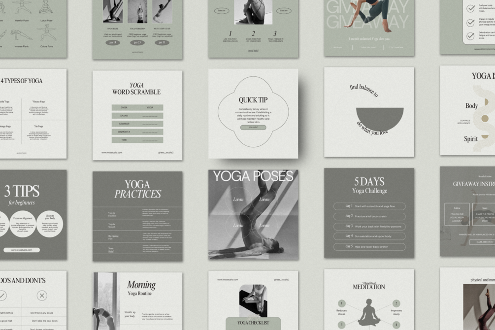 This template is designed specifically for Yoga, wellness, and health coaches who want to create posts to engage, convert and retain their audience.